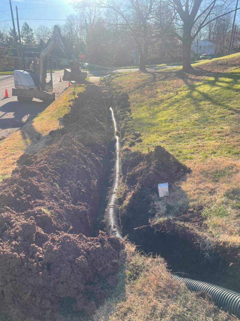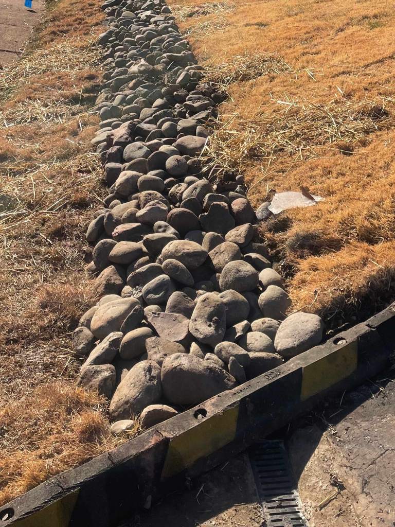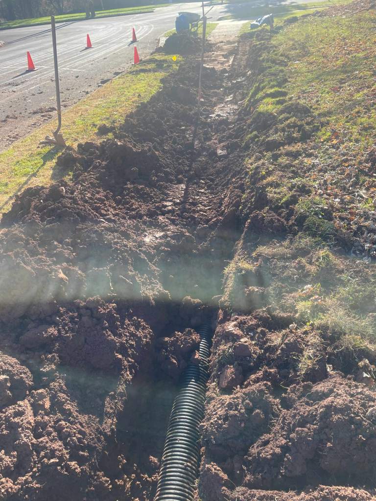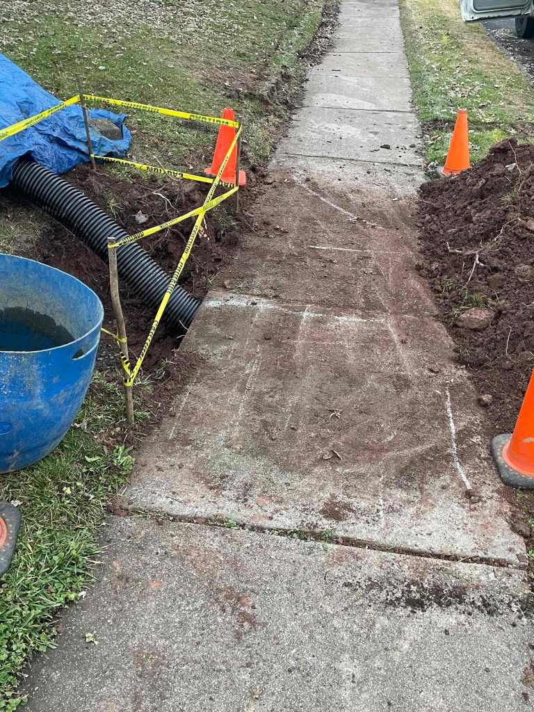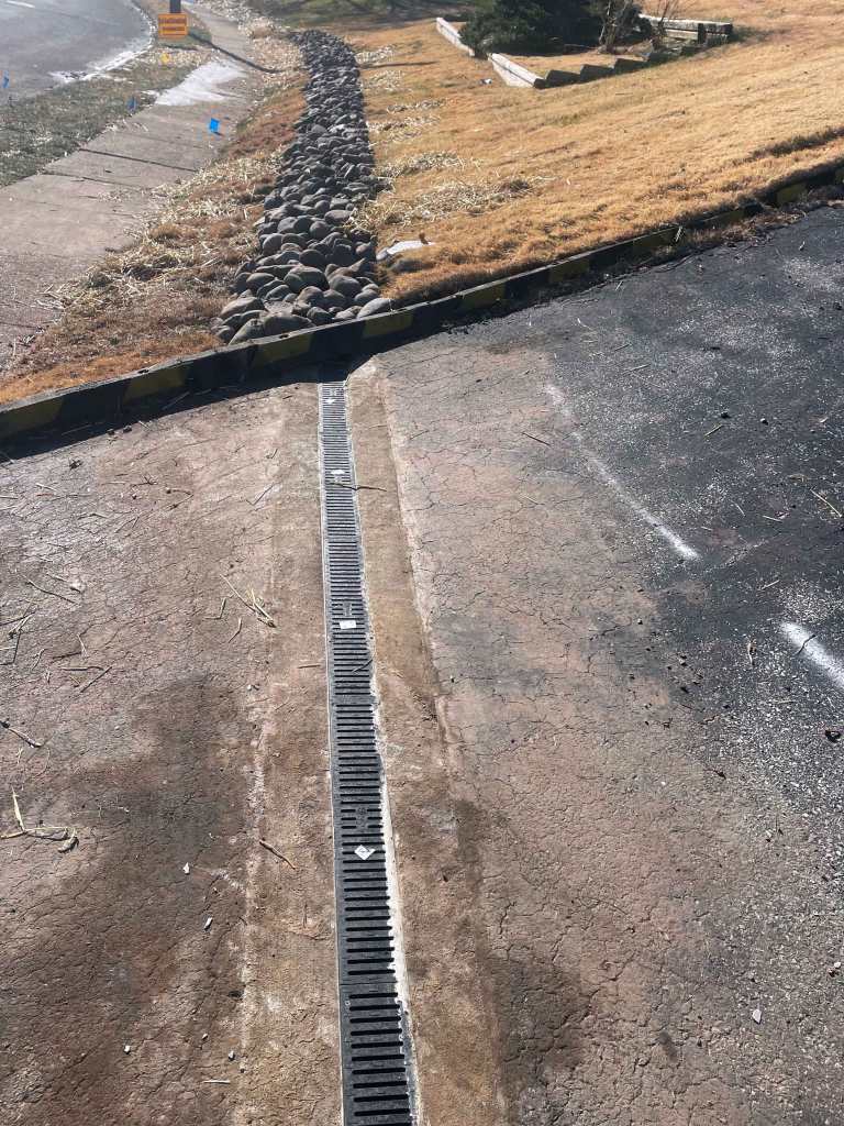Water was crossing the sidewalk and freezing over. Our excavating department added a perforated pipe and tied it into the storm sewer inlet.